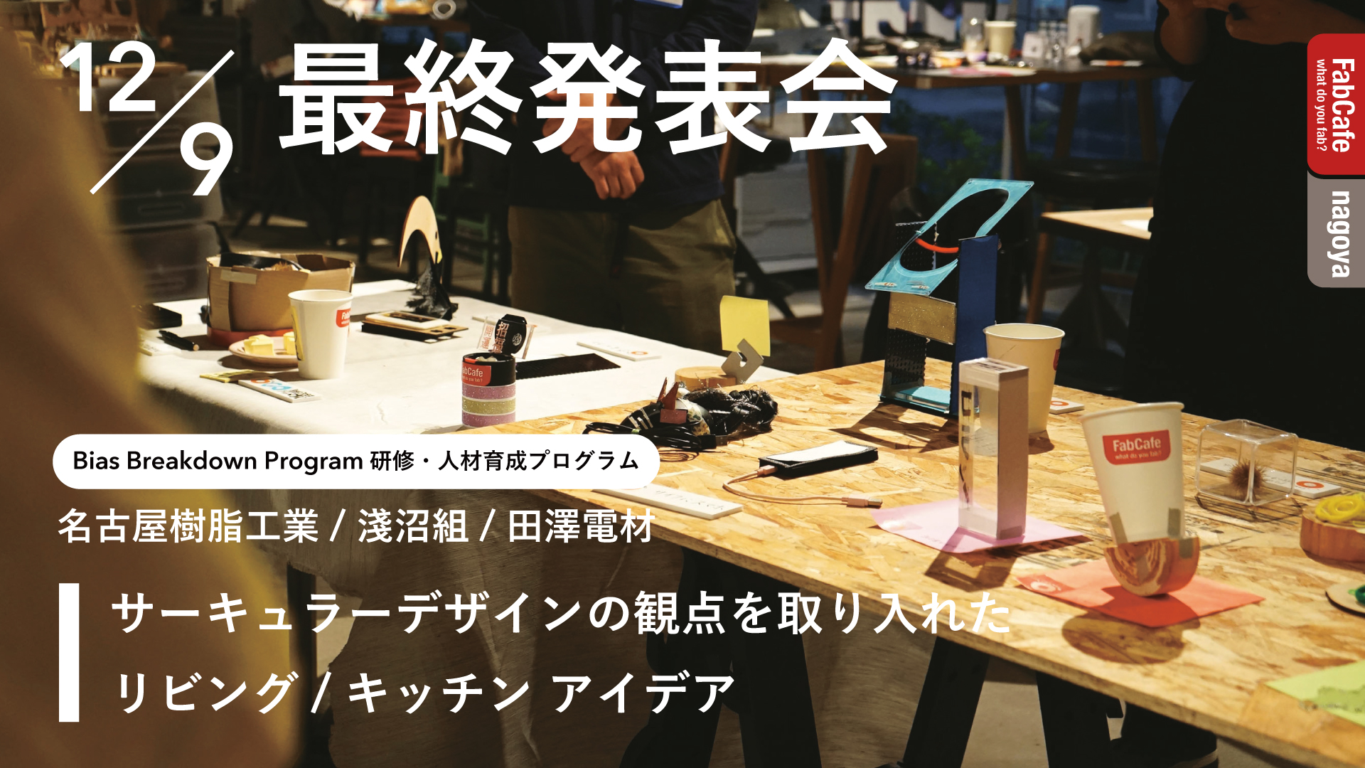 テーマは、「FabCafe Nagoya のリビング/キッチン アイデア」。サーキュラーに向けた自社の一歩目を、本気で考えたアイデアとなっています。