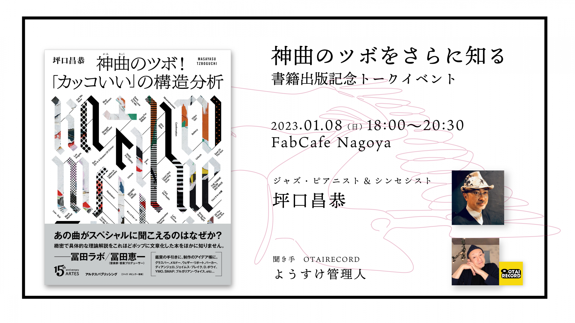 著者でジャズ・ピアニスト&シンセシストの坪口昌恭さんにお越しいただき、坪口さんによる実演を交えた解説により神曲がなぜカッコいいのかを書籍よりも一歩踏み込んで理解できるトークイベントになります。