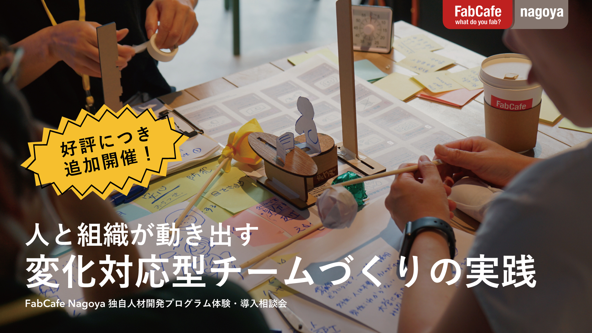 FabCafeおよびFabCafeと協働するロフトワークは、クリエイターやデザイナーと企業とのコラボレーションにより、企業人のマインドが変化し、それにより組織が変化し、新たな事業の萌芽が生まれる過程に数多く伴走してきました。このプロセスをより多くの企業に実践していただくことで、東海エリアの産業の活性化に対してボトムアップ的に寄与したい。そのためにFabCafe Nagoyaは、組織変革・人材開発プログラムの導入編として「バイアス破壊プログラム」の提供を開始しました。