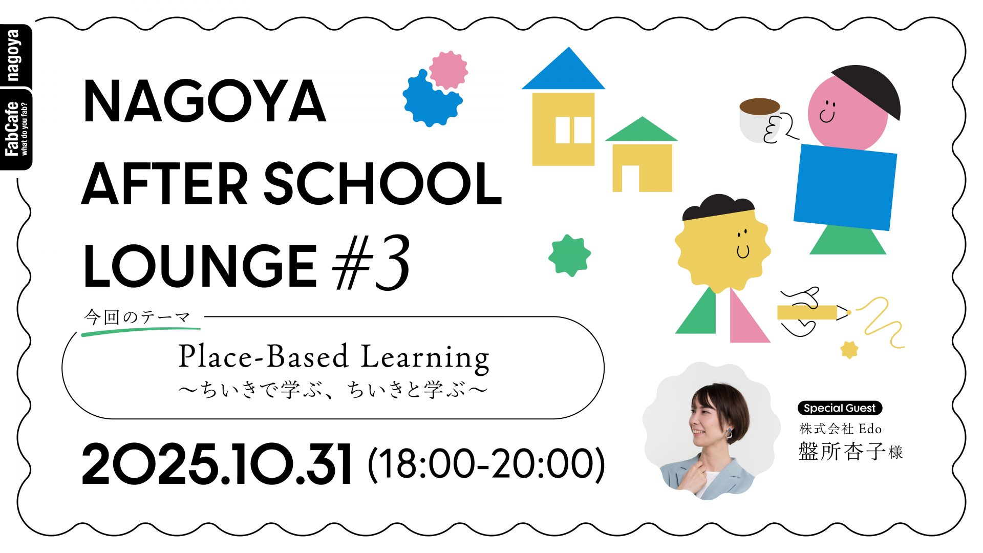 教育に関する多彩なゲストとともに、教育に関心をもつ仲間とゆるやかにつながる対話と創造の場「Nagoya After School Lounge」。第3回のテーマは「ちいきで学ぶ、ちいきと学ぶ」。“地域を舞台に学ぶ” ことで、子どもたちの学びがどう広がるのかを対話を通じて探っていきます。FabCafe Nagoyaのフードやスイーツ、ドリンクを楽しみながら、ゆるやかに語り合いませんか。