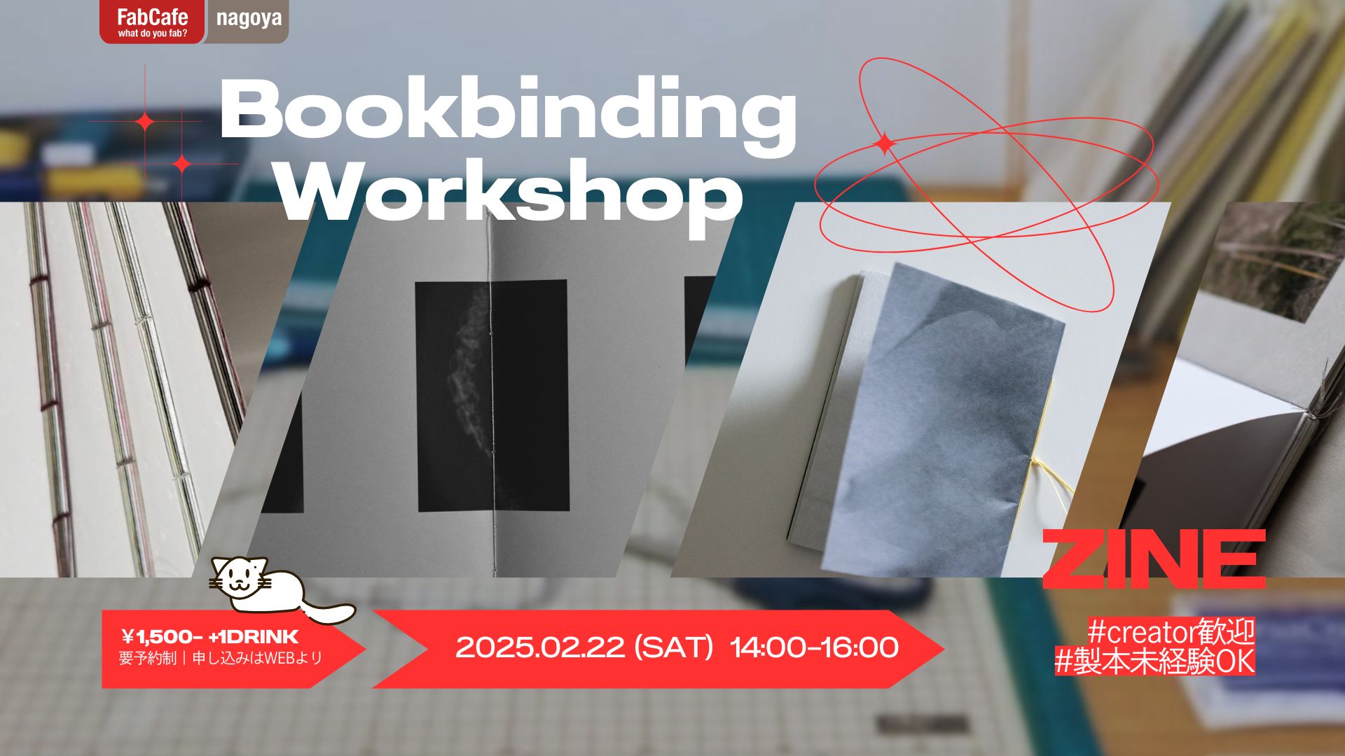 - 今回は、製本の講座となります。アーティストブック・ZINE制作については、ワークショップ後に思う存分チャレンジしてみてください。