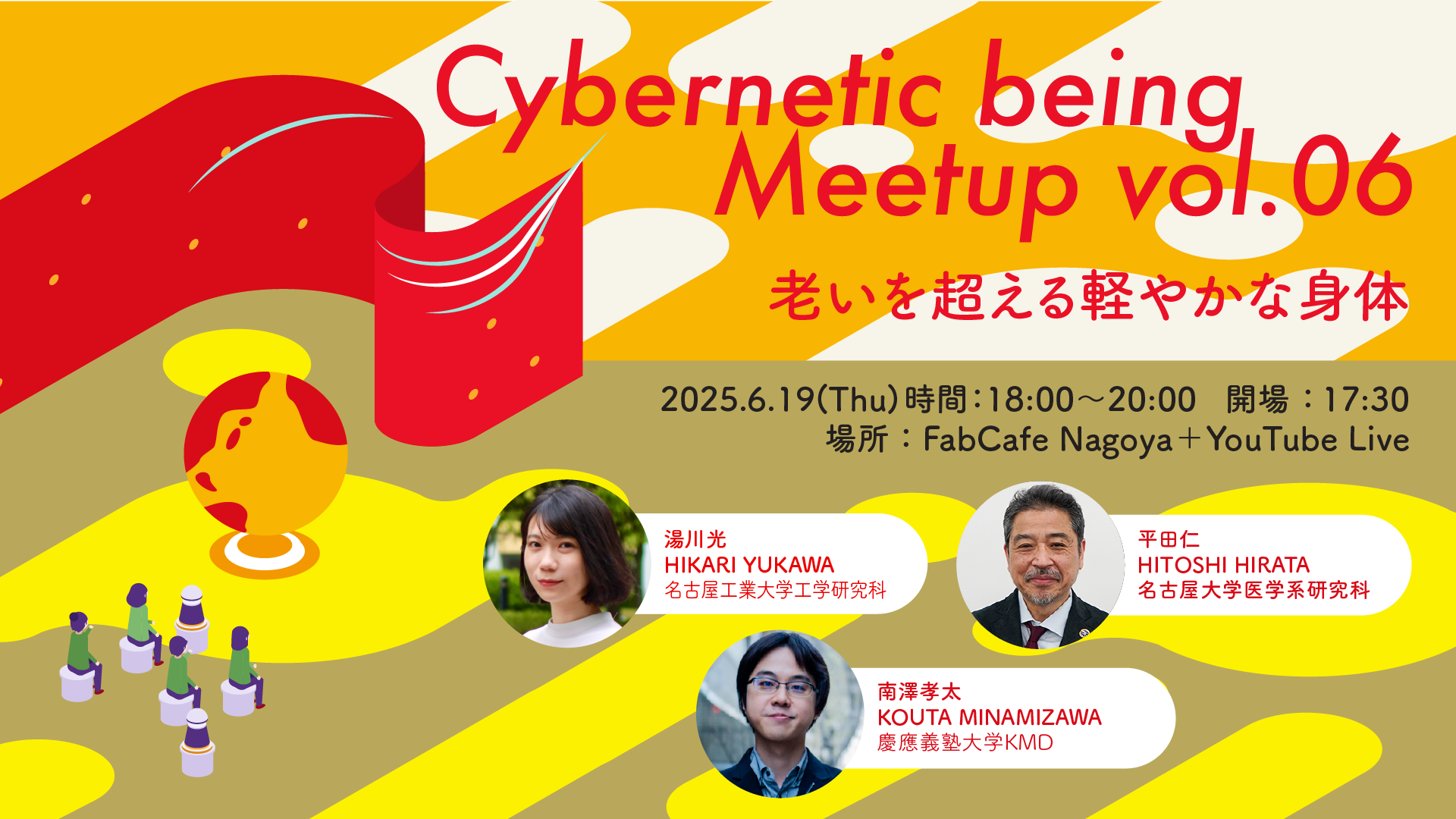 第6回目となるCybernetic being Meetup vol.06では『老いを超える軽やかな身体』と題して、感覚刺激を提示する装置で他者の感覚を受け取り、他者と能力を共有することで、衰えゆく身体状態であるフレイルの予防や幼児期の教育に活かす未来とその可能性について議論します。