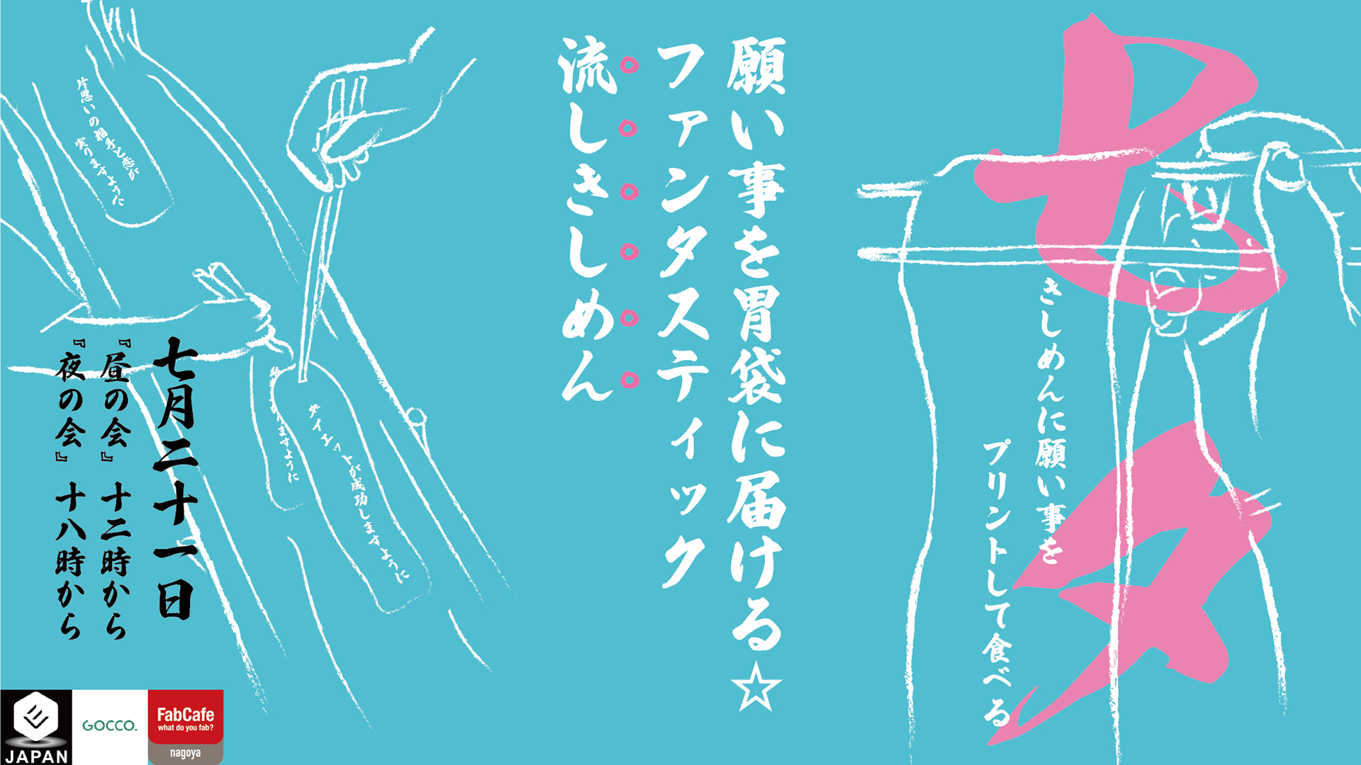 「願いを胃袋に届ける☆ファンタスティック流しきしめん」一昼夜限りの食と願い事の融合七夕イベントを開催いたします。きしめんを短冊に見立てて願い事を印刷し、食べることで願いが叶うというユニークな体験を楽しめます。さらに、夜の会では株式会社GOCCOの萩原大輔さんとEVEBOT JAPANさんをお呼びし、食べられる創造的なコンテンツについての座談会も開催されます。願い事を叶えたい方、叶えたくない方、新鮮味のある食体験を求める方におすすめのイベントです。ファンタスティックな時間と共に、あなたの願い事を胃袋に届けてみませんか?