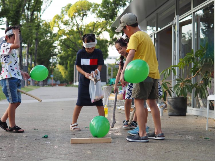 スイカに見立てた風船をオリジナル棍棒で叩き割ろう!