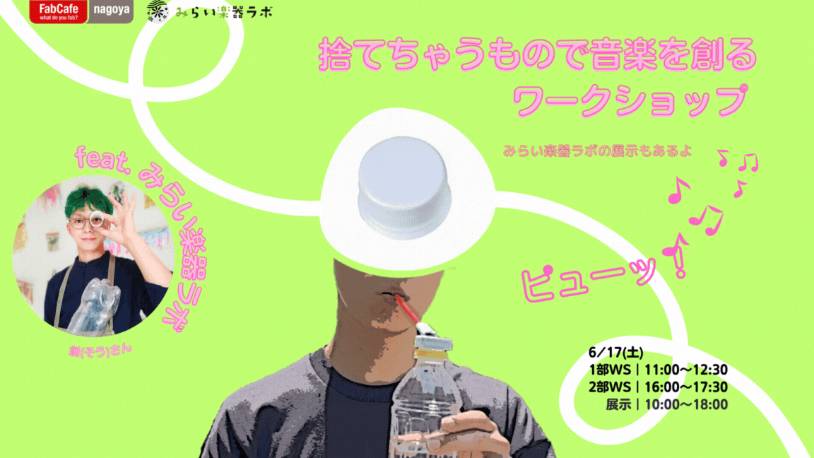 FabCafe Nagoyaは、クリエイターとともに、新たな視点や発想を“引き出す“きっかけを、地域のみなさまに提供しています。今回は、アップサイクル企画として、廃品で楽器を作り演奏するワークショップを開催!みらい楽器ラボ「創さん」とともに、捨ててしまうペットボトルで楽器を作り、音を奏で、みんなで響かせよう!!