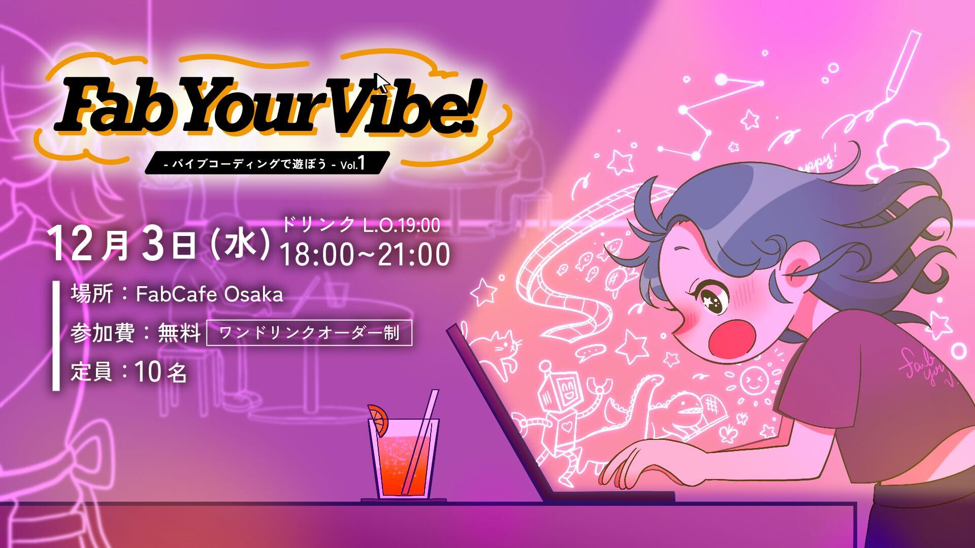 AIコーディングツールを使い、コードを書かずにアイディアを形にする体験イベント。初心者歓迎で、各自が自由に制作し、最後に成果を共有。創造性とバイブスを楽しむFabCafe Osaka発のワークショップ。