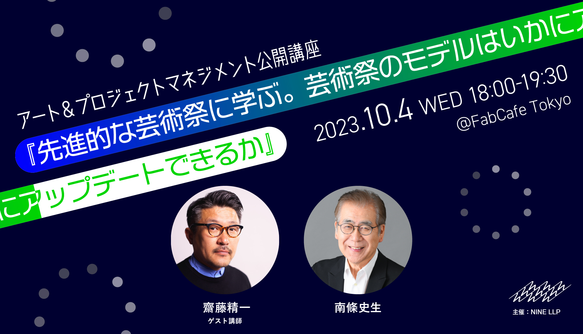 アートと社会を繋げるアートプロジェクトを多数手がけてきた齋藤精一氏と南條史生氏のトークセッションを交えて、プロデュース、マネジメントのナレッジや未来へのビジョンを共有します。