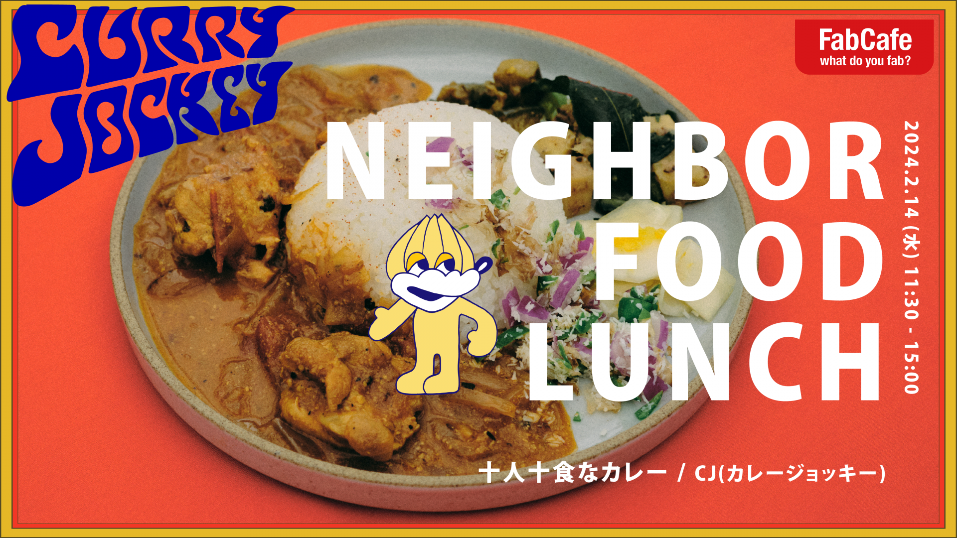 身近に多様な食文化を気軽に楽しむ「NEIGHBOR FOOD (ネイバーフード)」。2月14日(水)のランチ時間帯に、各地に赴き、DJのようにその時・その場に合ったカレーをジョックするCJ(カレージョッキー)をお呼びし、2種類のカレーを提供します!