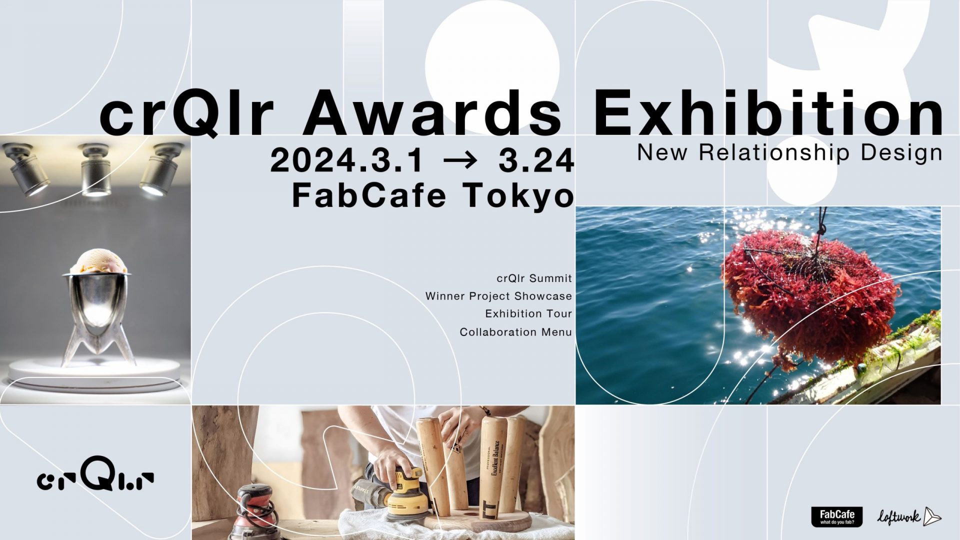 crQlr Awards 2023受賞したプロジェクトを展示するcrQlr Awards Exhibitionを3月1日から3月24日までFabCafe Tokyoで開催します!さらに会期中は、crQlr Awards 2023審査員と受賞者が集うオンライントークイベント「crQlr Summit 2024 TOKYO」、受賞展示ツアー「crQlr Awards Exhibition Tours」や特別賞受賞「Sea vegetable Circulation」とコラボレーションした期間限定のFabCafeメニューも登場するなど、多彩なプログラムを展開します。FabCafe Tokyoに是非お越しください。