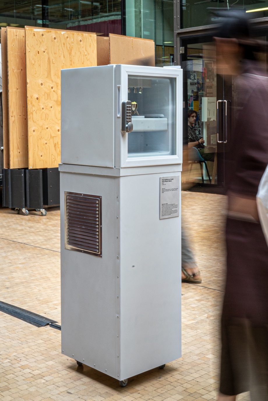 アイスクリームは食品安全性のテストが必要なため、施錠された冷凍庫に展示されています。