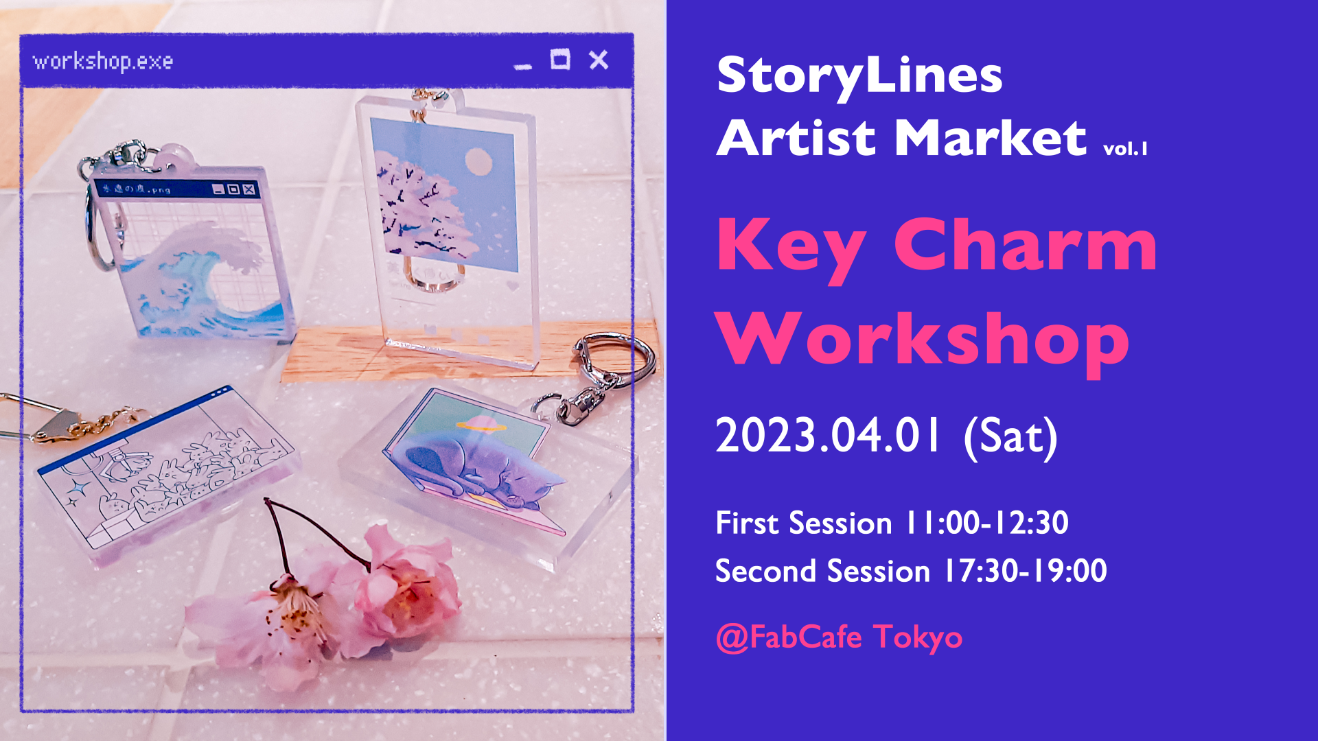 レーザーカッターとUVプリンターを使用して、StoryLines Artist Market vol. 1のゲストアーティストの綺麗なデザインを生かした、ポップで可愛いアクリルキーチャームをゼロから作りましょう。