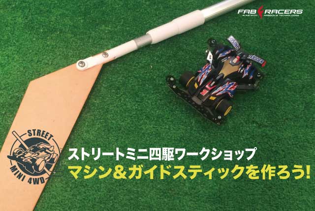 今巷で大人気!?ストリートミニ四駆マシンとマシンを操るガイドスティックを作るワークショップです。