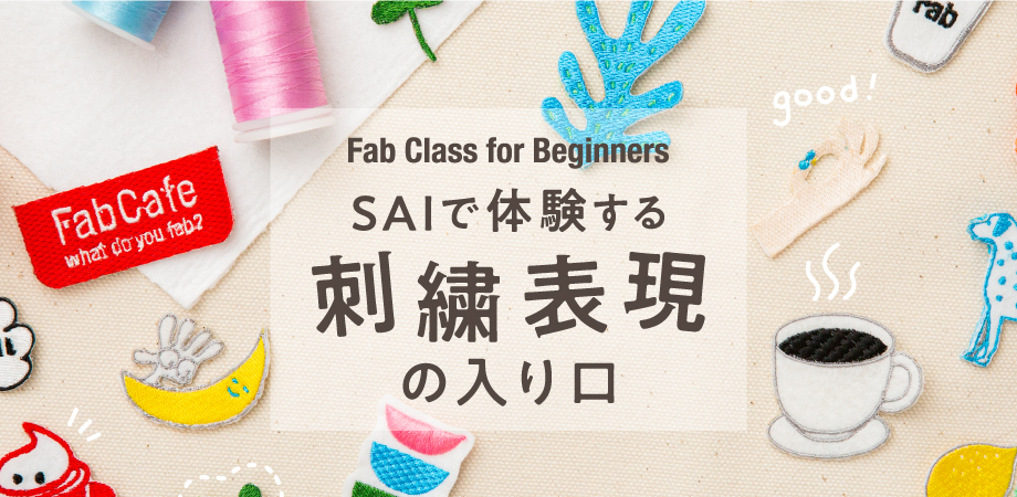 デジタル刺繍ミシンTAJIMA 彩 SAI (以下SAIと記す) は、はじめてミシンにふれる方はもちろん、グラフィックデザイナー、イラストレーターの方も普段の作品から刺繍を施したアイテムを制作することができます。作品の幅を広げたい方や、デジタル刺繍に挑戦してみたい方向けの教室です。