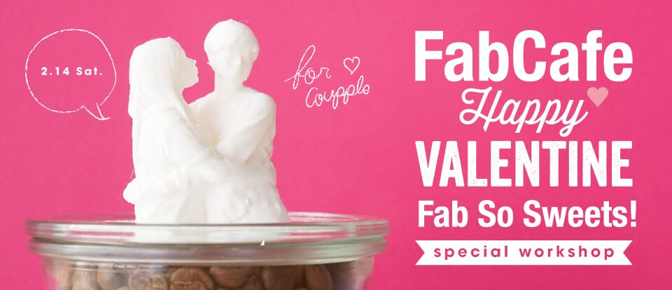 バレンタインの2人の思い出を3Dスキャン&3Dプリンター出力!FabCafeのバリスタとパティシエが2人のために作った特別なスイーツとコーヒーを楽しめる6組限定のバレンタインスペシャルワークショップです。