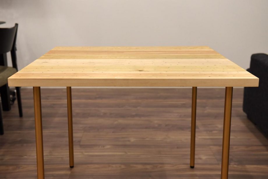 木と金属、互いのポテンシャルを掛け合わせることで、2つの天板に独自の特徴が加わり、日々の使用を通じて、人とモノとの関係づくりに期待できるテーブルが完成しました。
