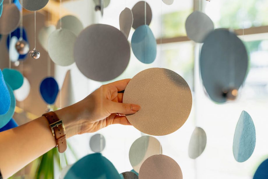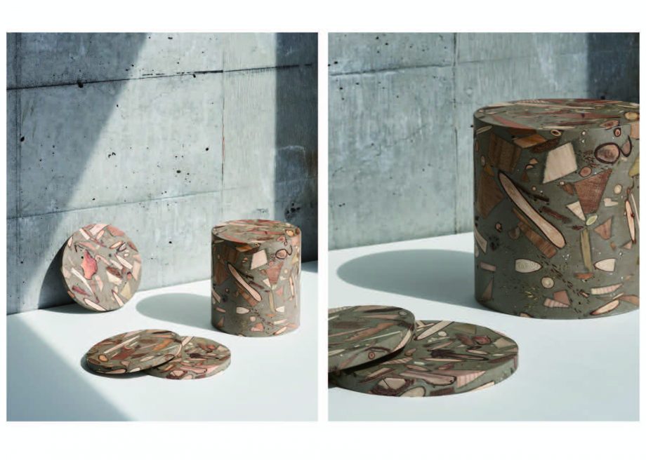 2020年からは、小径木が多いなどの理由から建材利用されにくい飛騨の広葉樹を使った「ForestBank」シリーズを発表。枝や葉、木の実などを有機溶剤・VOCフリーの水性樹脂造形素材に埋め込むことで、森の多様性をデザインしています。自然の美しさに圧倒され、心を奪われる際の“感覚”をデザインに落とし込んだというこのシリーズでは、作品に触れた人が、実際に山や森へ足を運んだり、自然に思いを馳せたりすることのきっかけづくりとなれば…という狩野さんの願いが込められています。