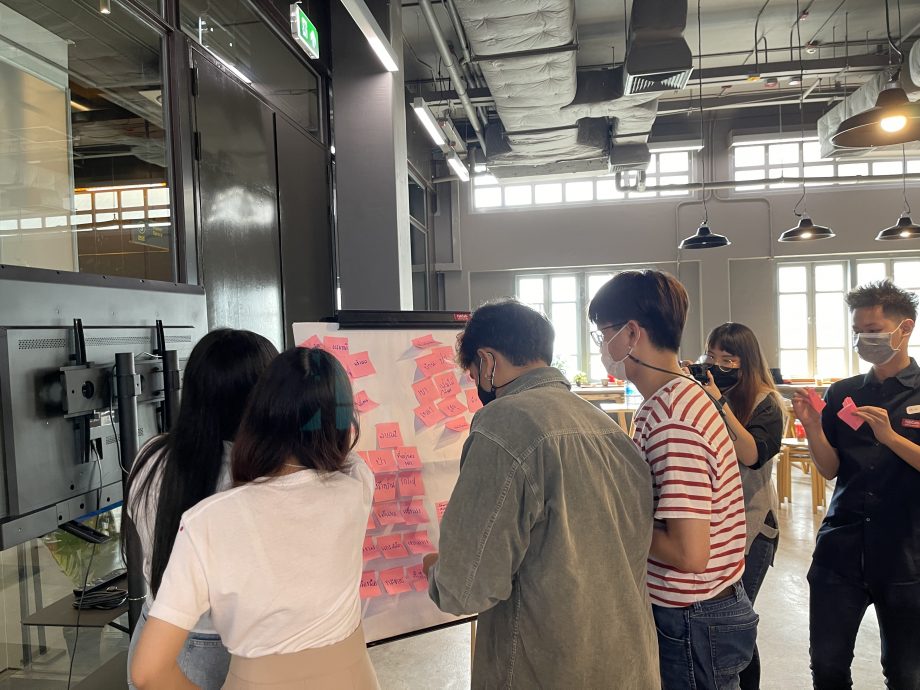 その後、各チームのトピックを定義するため、参加者は「タイの文化に特有な点は何か」、「現在のトレンドに関連している人々の行動は何か」を考え出すことで課題を分析。これらのタイ特有の文化的なポイントや行動と、現在のトレンドや感情的な側面を掛け合わせることで、新たなアイデアを導いていきました。