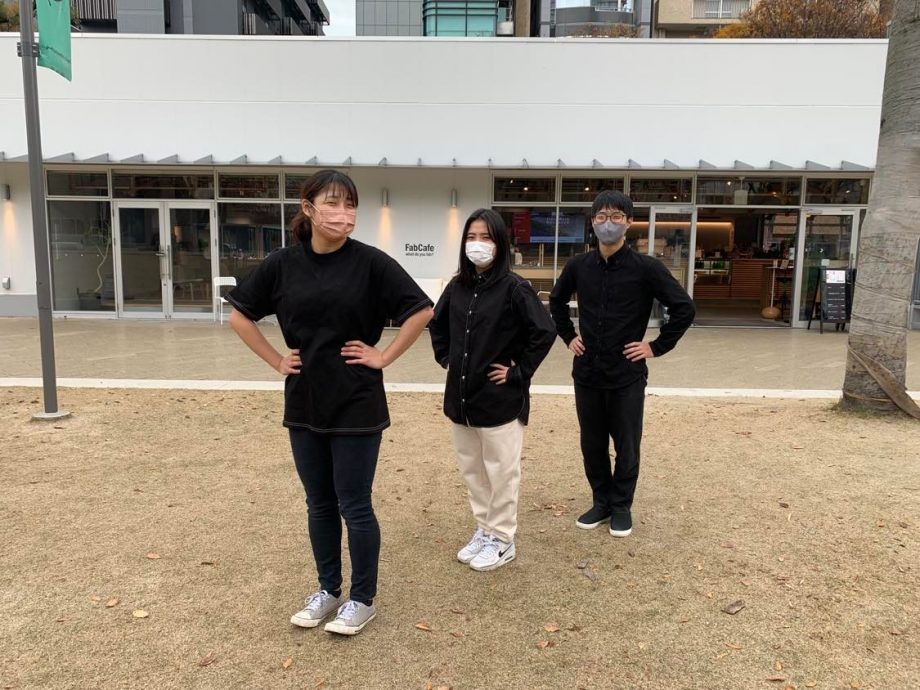 FabCafe Nagoyaのユニフォームはグレーと決まっています。でも、「たまには気分を変えて、違う色の服を着て働きたいよね!」と、話していました。