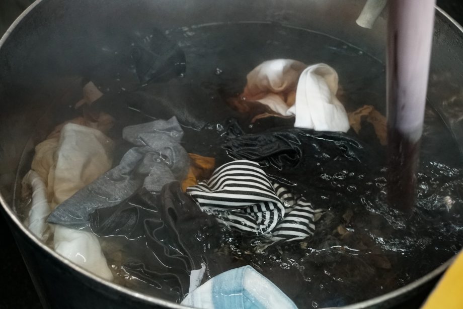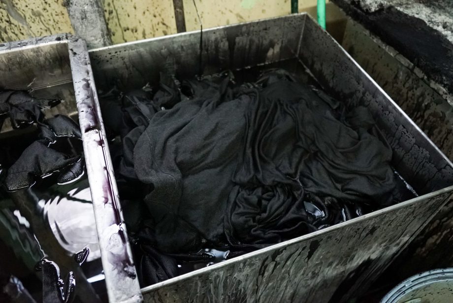 地入れをお湯の色が変わらなくなるまで行ったあとに、服を黒く染めて行く作業をしました。