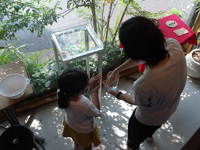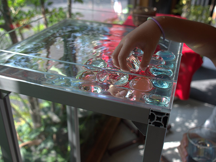 もうひとつは吸水ポリマーを使った実験。吸水ポリマーを水に入れた時に輪郭を失っていく様子が面白く、どうやったら綺麗に見えるかいろいろ実験してみたそうです。