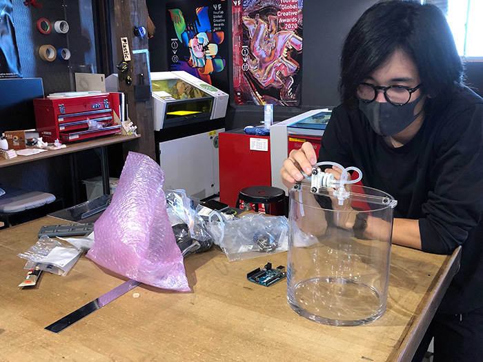 平日は仕事をしているので、週末組のメンバーと一緒に静かなFabCafe Kyotoで作業することが多かったのだそう。