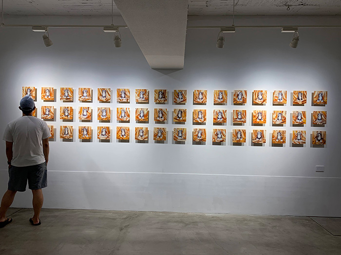 世界中のIKEAで販売されているぬいぐるみ玩具をモチーフにしたアートプロジェクト「@Same_Not_Same」を3年前から続けてきた木村華子さん。IKEAの猫のぬいぐるみを買い、訪れた国内外の場所で出会った方々にプレゼントするかわりに、ぬいぐるみに名前を付け、持ち帰った後の写真を@Same_Not_Sameと商品名をタグ付けして投稿してもらうという活動。作品の重要なテーマのひとつは「愛着が形成されるプロセス」。よく見るとひとつひとつ異なる表情の猫のぬいぐるみ。彼女自身も、1番最初に買ったぬいぐるみをイケちゃん、その後活動を始めてから購入したぬいぐるみをニケちゃんと名前をつけて大事にしているといいます。(ちなみに、個展ではイケちゃんは作家所有物につき非売品、ニケちゃんは1億円で展示販売していました。)この、「大量生産品に愛着が形成されるプロセス」については、個展直後の8/5に「ぬいぐるみと大人の関係。もしくは無機物に対して発生する「愛着」について。」というトークイベントを実施。アーカイブ動画も上がっていますので、興味のある方はぜひご覧ください。個人的には、お酒飲みながら一晩話せる類のトークでした!