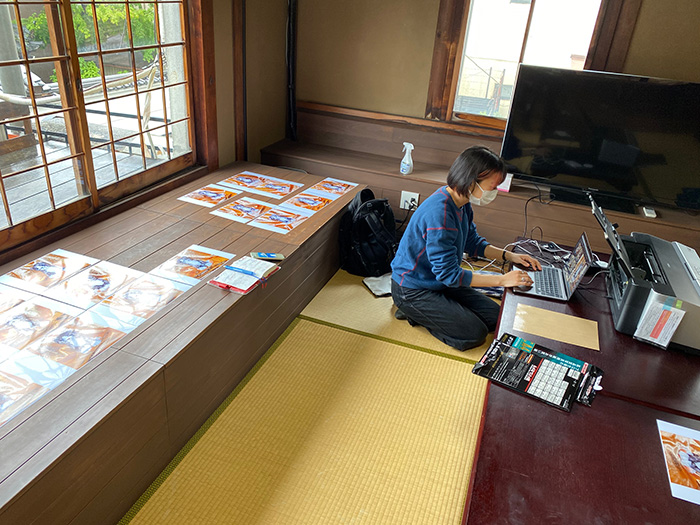 個人のプリンターを持ち込んで粛々と印刷を進めていた華子さん。パソコンの画面で確認できる色と実際にプリントされた時の色が異なり、色の調整に発狂しそうになりながらも(笑)頑張っていた。相手の癖を理解したうえでコミュニケーションとっている様子を見て、機械も生き物みたいだなあと思いました。
