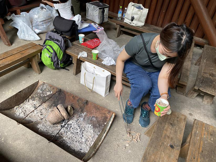 バーベキュー場で焼成した際は、CP第3期メンバーでテディベア作家の宮尾さんが参加。「縄文人も焼き物作ろうとしたんじゃなくて、食べ物を焼いていたら土が硬くなったぞって気づいたのかもね」なんて憶測しながらつくっていました
