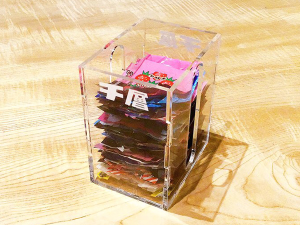 1/18までFabCafe Kyotoでメニューを注文した方に、チロルチョコをプレゼント。食べ終わったパッケージをレジ横のチ層にどうぞ。一緒にギネス記録に挑戦しましょう!