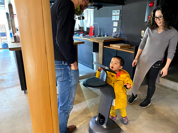 「エッグパーティー」によるテレプレゼンスアバターロボットがFabCafe Kyotoをハック!小さな男の子がロボットに夢中になる姿が素敵でした。