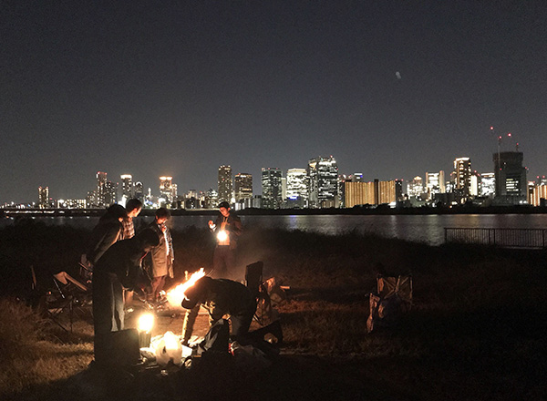 COUNTER POINT1期メンバーと、運営チームで淀川(大阪)の河川敷で焚き火。レジデンス中に、京都の街で焚き火ができる場所を開拓できるのか…?情報求ム!