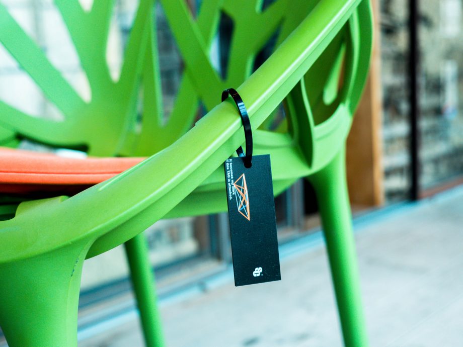 タグの「どこの誰のものか示す」という役割に着目し、オリジナルのタグをカフェのあらゆるものに付けることで、介入を試みた作品。