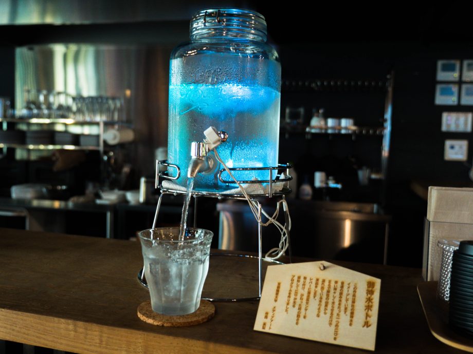 たった一つのLEDで普通の飲み水を神々しく光らせることで、神社の山奥から溢れ出ているような感覚を呼び起こそうとした作品。