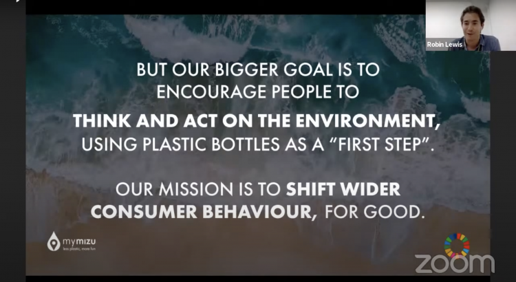 ロビン氏: mymizuをリリースした時、 「水をもらいにカフェに入るのを遠慮するから、日本でこのサービスはうまくいかない。」と言われました。また、プラスチックゴミが最終的にどうなるのか。日本のプラスチックのリサイクル率は85%ですが、リサイクル可能なプラスチックが焼却処理されていたり、輸出されたりというような事実もありますが、こういった事をほとんどの人はそもそも認知していません。