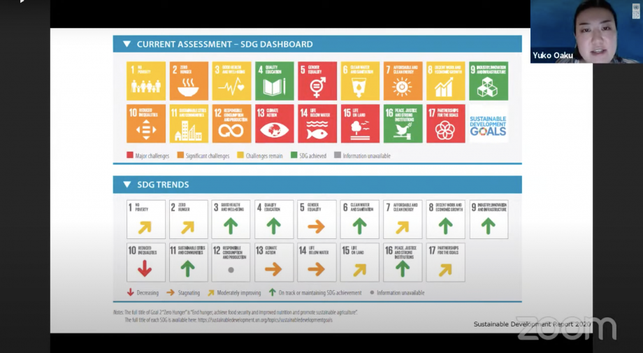 イベントのテーマである「海の豊かさを守ろう」というSDGsのゴールについて、彼女自身のモルディブでの経験も交えながら、国連開発計画(UNDP)の大阿久裕子氏に説明いただくところから、トークイベントがスタート。