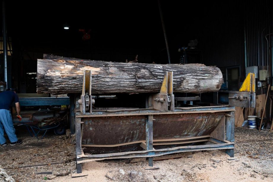 ホウノキを製材する様子