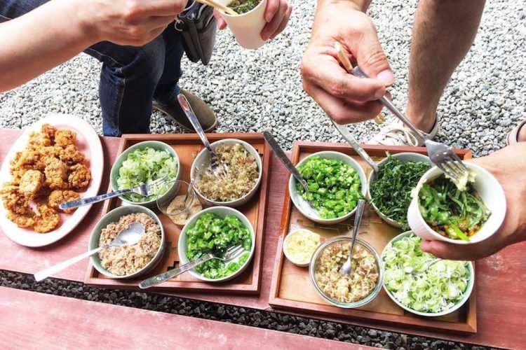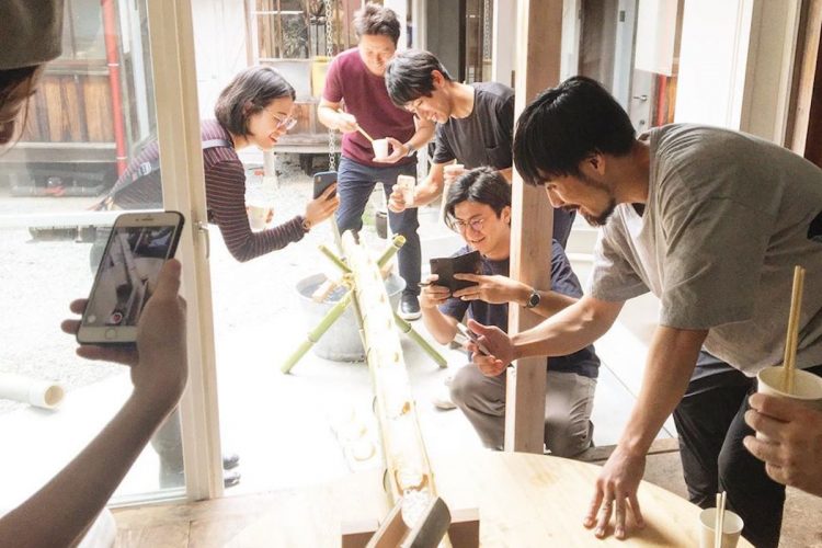 Day2はちょうどカフェの定休日。いつもヒダクマでお世話になっている飛騨の家具職人・堅田さんからの提案で、「カフェでそうめん流しをしよう!」と、プロジェクトメンバー、ヒダクマスタッフみんなでランチタイムを楽しみました。