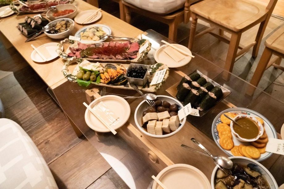 Day1のディナーは、明治3年創業、池波正太郎ゆかりの老舗料亭旅館・蕪水亭の薬草料理をケータリング。ワーク後、ミネラルたっぷりのからだに優しい料理をみんなでいただきました。