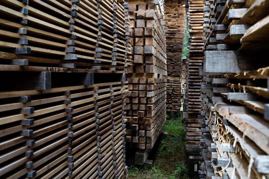天然乾燥中の木