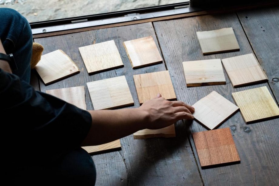 サンプルを見ながら樹種の選定