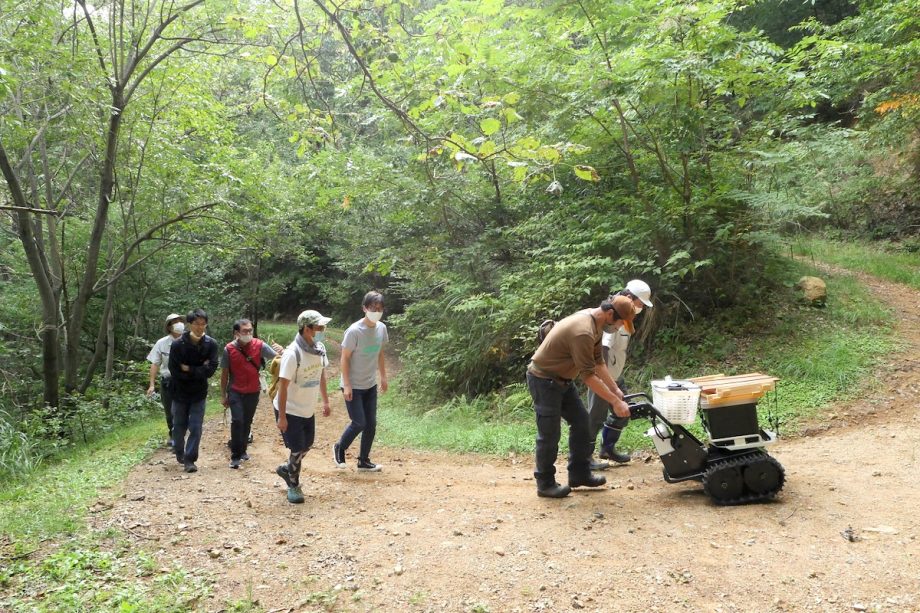木材の搬出だけではなく、森の中での様々な作業に使える可能性があり、全国の実地で実験しデータを取っているところです。今回はヒダクマから、ぜひ飛騨の森でその実験をおこなってもらいたいとお声がけをしました。