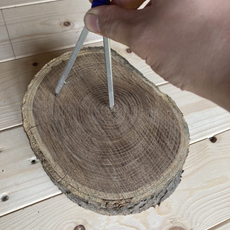 ①コンパスを使って円を描く
