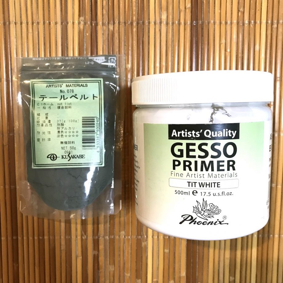③ジェッソを塗ったのち乾燥させ、ヤスリで表面を平らにする。これを何度か繰り返し、平らな表面をつくる