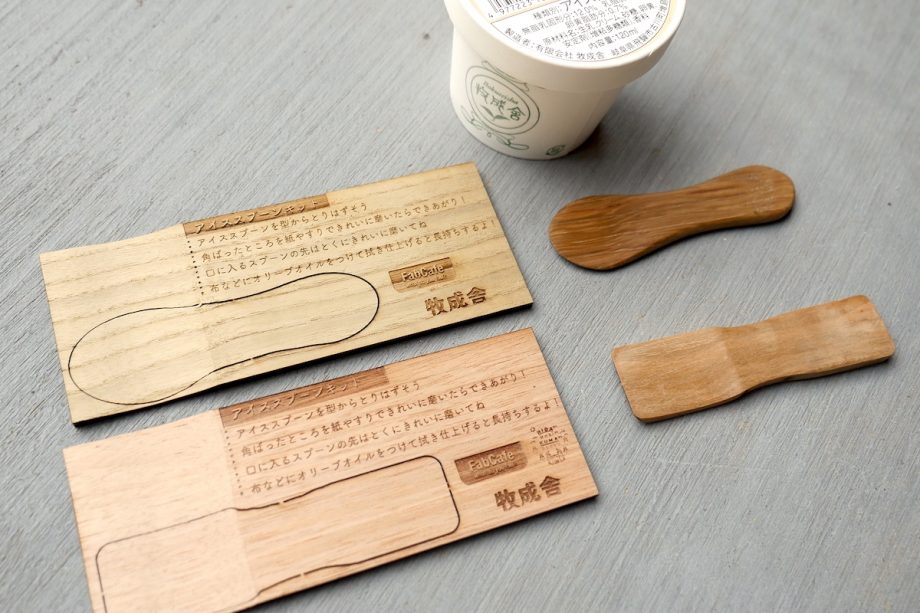FabCafe Hidaの木工房で生まれる木っ端を再利用した「スプーンKit 」。