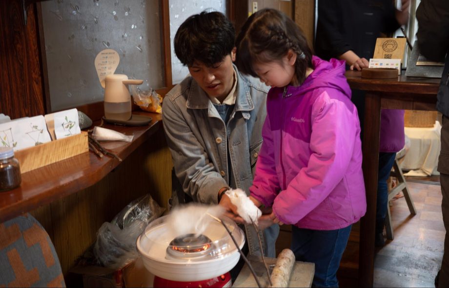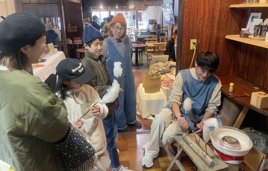 森のクリエイティブディレクターの黒田は、今まで様々なイベントで実施してきたクロモジの枝を使用した綿飴作り体験ブースを。お子さまから大人まで大人気でした。