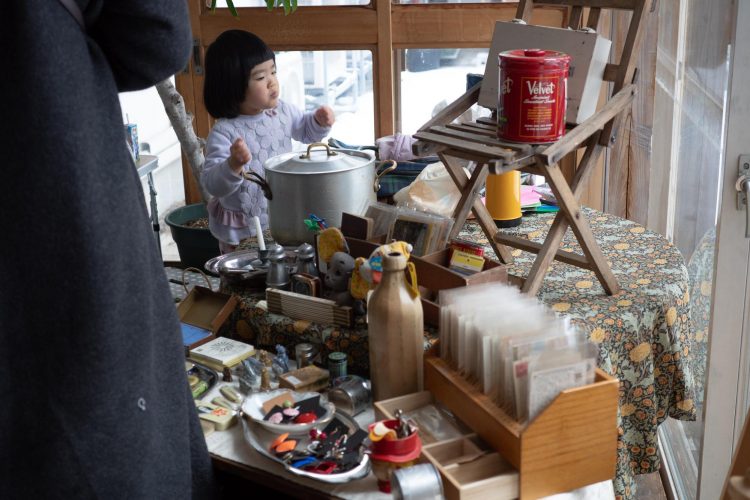飛騨市に移住されたばかりのご夫婦「山際商店」さんも、フリーマーケットとして出店。ご自身で制作された什器を使い販売されました。