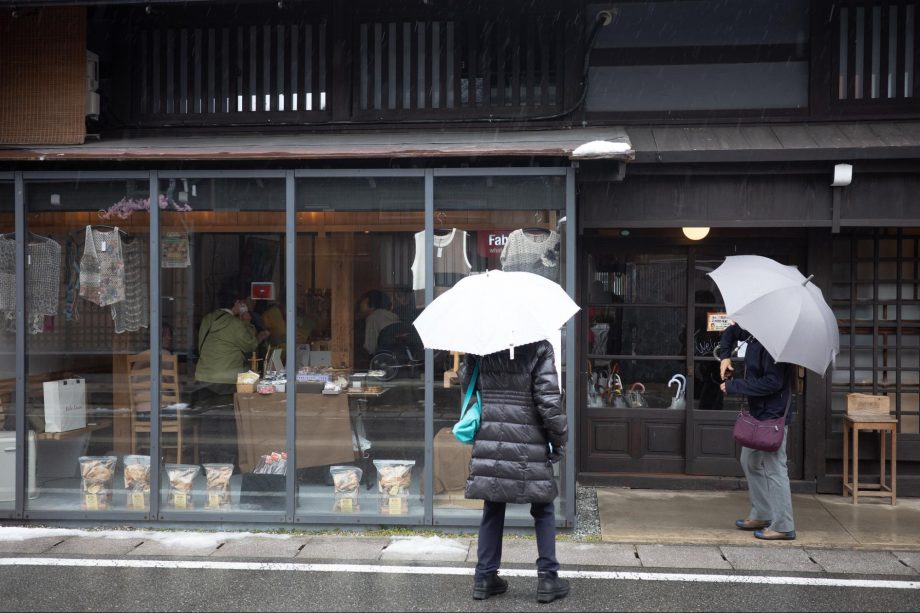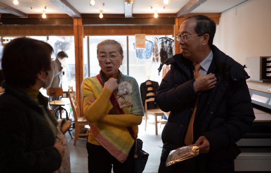 当日は、朝から雪が降りました。ガラス張りのファサードからみえる中の賑わいに「何かイベントですか?」と入って来られる観光の方やご近所さんも。