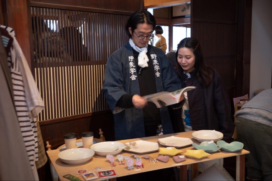玄関入ってすぐの小上がりに出店してくださった、住職書房さんとhimeshalaさんもゆっくり選びたくなる商品がたくさん並びました。思わず座り込んで話してしまうお客様も。