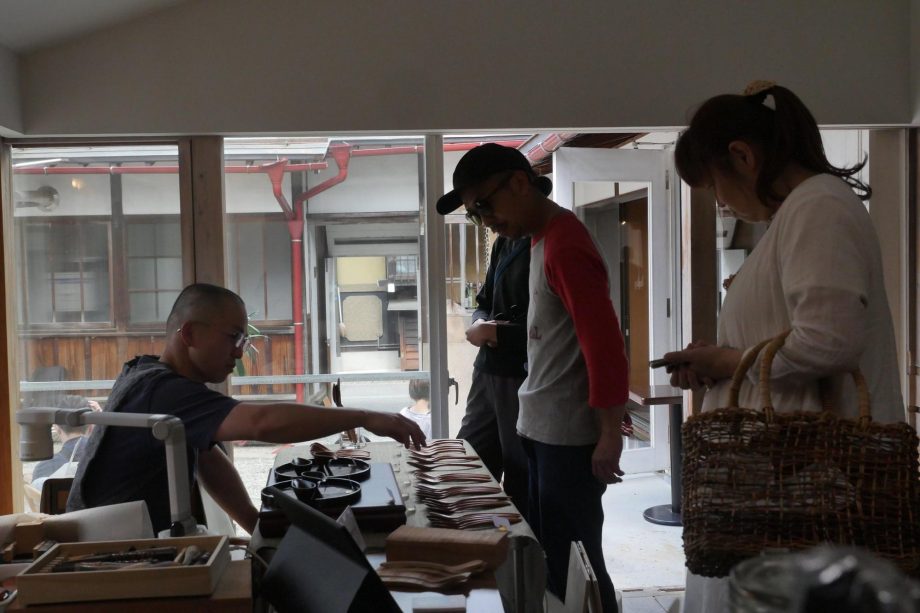 木村工芸所さんは、実演販売してくださいました。この日が初お披露目の新作も並び、足を止めて見入るお客さまもたくさんいらっしゃいました。職人さんの実際の手仕事を見れる機会はあまりないので、貴重な光景でした。