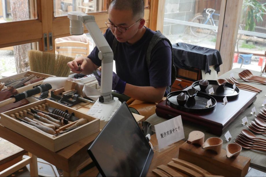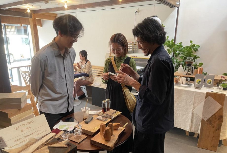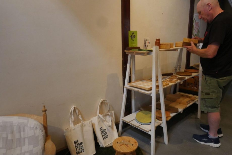 飛騨高山の木工作家のKOIVUさんは、アウトレット品を多数取り揃えて出店してくださいました。海外の観光客の方も、その木工の技術に感動されている様子。